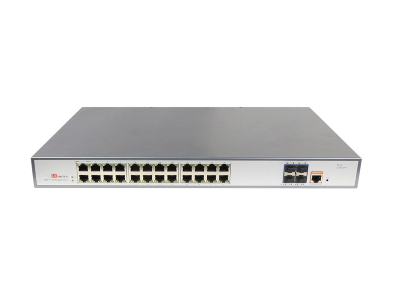 The SG-38028FM series is a 10G uplink layer 3 managed Ethernet fiber switch independently developed by Shogun. It has 24*10/100/1000Base-T RJ45 ports and 4*1/10G independently developed by Shogun. It has 24*10/100/1000Base-T RJ45 ports and 4*1/10G SFP+ fiber slot ports. Each port can support wire-speed forwarding. The SG-38028FM has L3 full network management function, supports IPV4/IPV6 management, static route full line rate forwarding,complete security protection mechanism, complete ACL/QoS policy and rich VLAN functions, and is easy to manage and maintain. Supports multiple network redundancy protocols STP/RSTP/MSTP (<50ms) and (ITU-T G.8032) ERPS(<20ms) to improve link backup and network reliability. When one-way network fails, communication can be quickly restored to ensure important Uninterrupted communication for applications. According to the actual application requirements, you can configure multiple application services such as port traffic control, VLAN division, and SNMP through the Web network management mode. It satisfies high-density network application environment and is suitable for medium, large-scale scenes such as hotel, campus, park, shopping mall, scenic spot, hospital, bank to form an economical, efficient and reliable communication network.