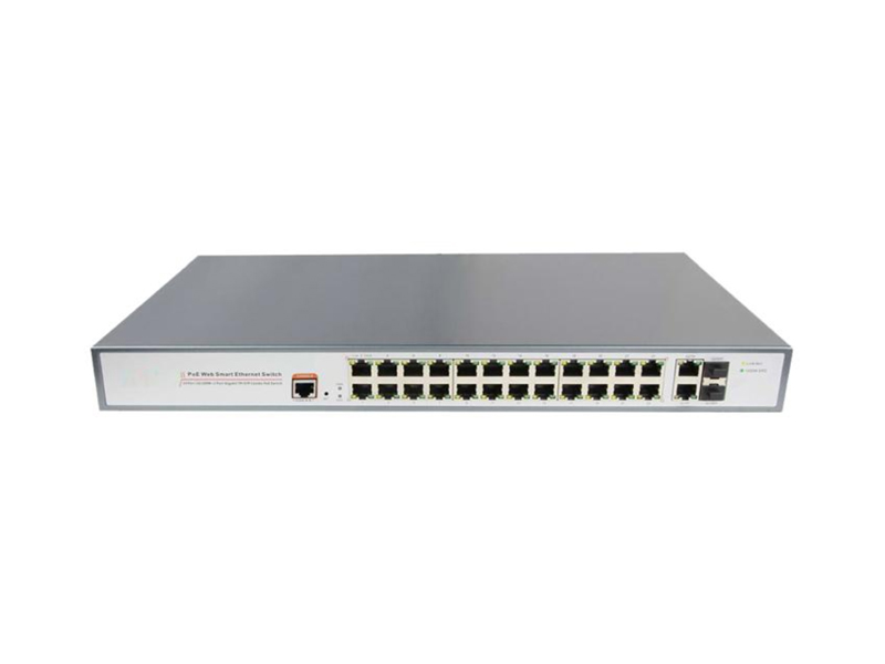 The SG-POE31024PFM series is a Gigabit uplink managed PoE fiber switch independently developed by Shogun. It has 24*10/100M RJ45 ports and 2 *10/100/1000M RJ45 ports and 2 *100/1000M SFP fiber slot ports (combo port), Port 1-24 can support IEEE 802.3af/at standard PoE power supply, and single port PoE power reaches 30W. The maximum PoE output power is 400W(at-600W). and each port can realize line-speed forwarding.The SG-POE31024PFM series adopts a new generation of high-performance hardware and software platforms to provide flexible and cost-effective 100Mbps access and uplink ports. It supports complete security protection mechanisms, complete ACL/QoS policies, and flexible VLAN functions, and is easy to manage and maintain. As a PoE power supply device, it can automatically detect and identify the power-receiving equipment that meets the standard and meet the network environment that needs high-density PoE power supply. It is suitable for hotels, campuses, parks, attractions, supermarkets, Factory quarters and small and medium-sized enterprises form a cost-effective network.